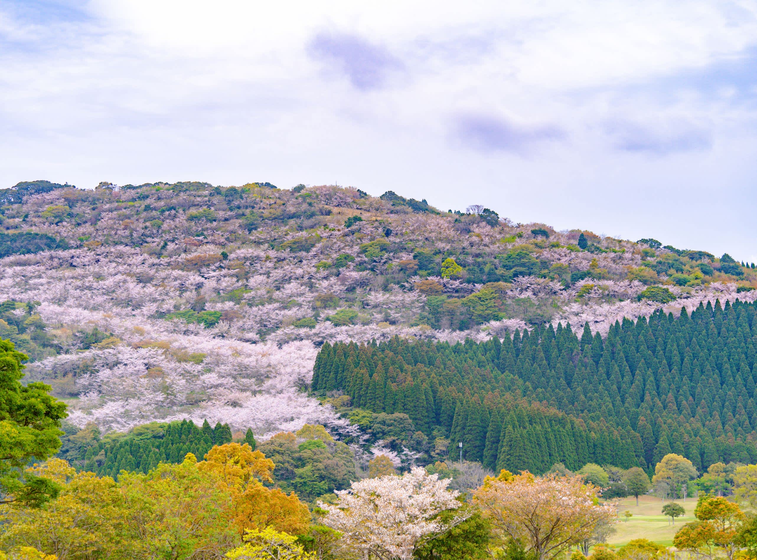 Công viên Hanatate tọa lạc tại thành phố Nichinan, tỉnh Miyazaki, là công viên tự nhiên rộng lớn nằm ở độ cao 489 mét so với mực nước biển. Hằng năm, từ cuối tháng 3 đến đầu tháng 4, khoảng 10,000 cây anh đào đồng loạt khoe sắc trên diện tích gần 20 hecta, nhuộm cả ngọn núi trong gam hồng nhạt dịu dàng.