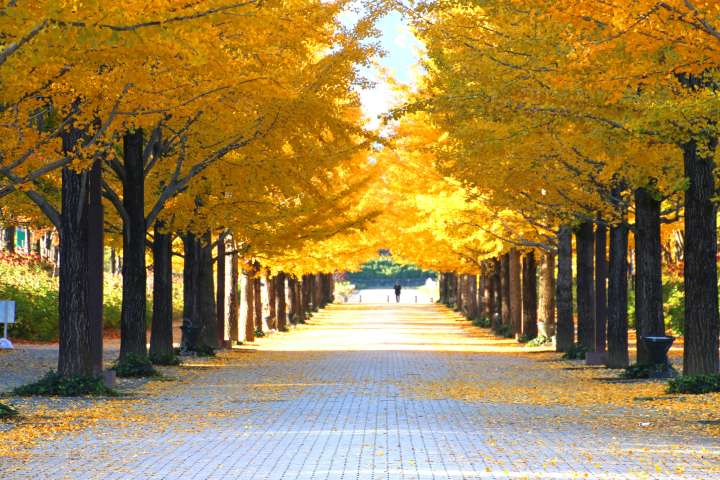 Cứ đến cuối tháng 10 tới giữa tháng 11, công viên thể thao Azuma ở Fukushima lại chào đón du khách thập phương với khung cảnh được dệt thành từ những tán lá vàng ươm của hàng cây bạch quả trên con đường dài 520m. Nếu có thể hãy ghé thăm công viên vào buổi tối để tham dự sự kiện thắp đèn nơi đây và chiêm ngưỡng không gian lung linh ấn tượng với một vẻ đẹp hoàn toàn khác so với ban ngày.