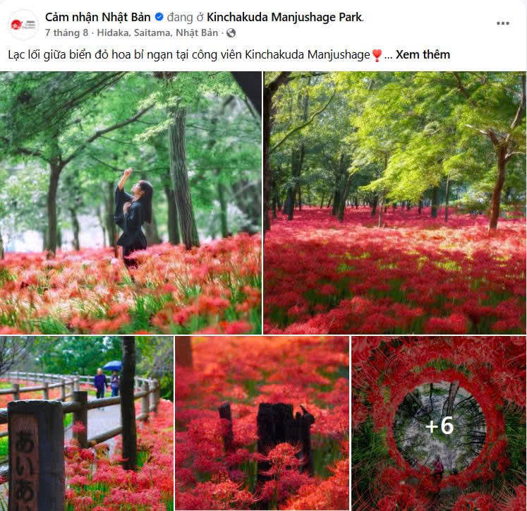 Sắc đỏ quyến rũ của biển hoa bỉ ngạn tại công viên Kinchakuda Manjushage (tỉnh Saitama) đã thu hút được rất nhiều lượt yêu thích từ fan của Cảm Nhận Nhật Bản. Đây cũng là một trong những loài hoa đặc trưng của mùa thu xứ sở mặt trời mọc.