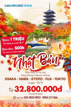 【ハノイ発】大阪‐奈良-京都‐富士山₋東京 6日間 32,800,000 VND~ (約189,000円)