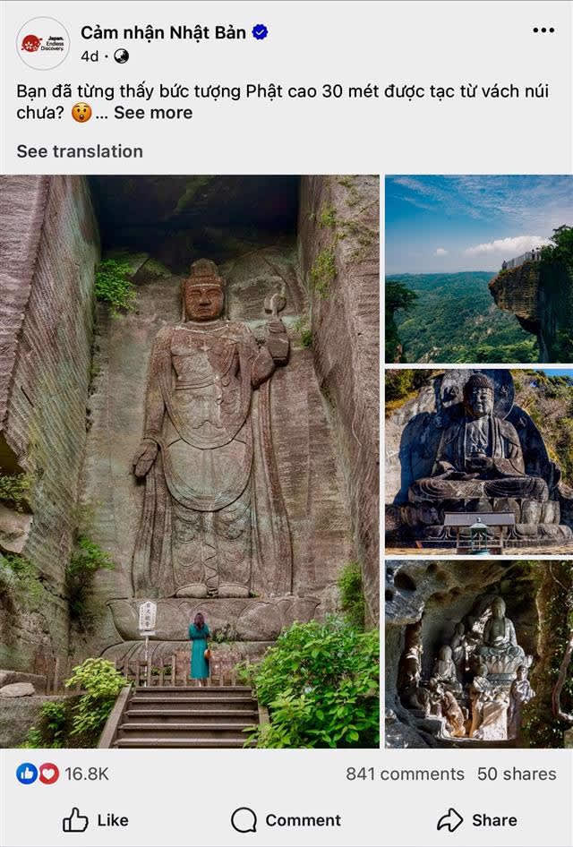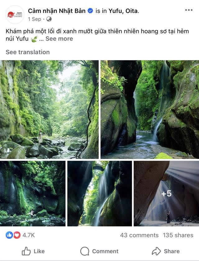 時を経て、流れる由布川の水が浸食を重ね、高さ約60~80m、全長12km以上の壮大な断崖を生みました。崖に打ち寄せる水の音、木々を揺らす風の音を想像させる写真がベトナム人の心を惹きつけました。(オーガニックエンゲージメント数:8,336)