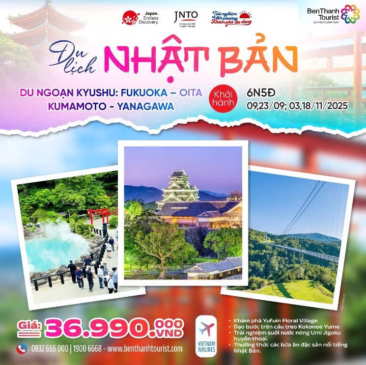 【ホーチミン発】 福岡₋大分₋熊本₋柳川 6日間 36,990,000 VND~(約213,000円)