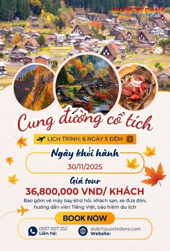 ●Dana International Travel【ホーチミン発】名古屋–高山–白川郷–福井–京都–大阪 6日間 36,800,000 VND~(約213,000円)