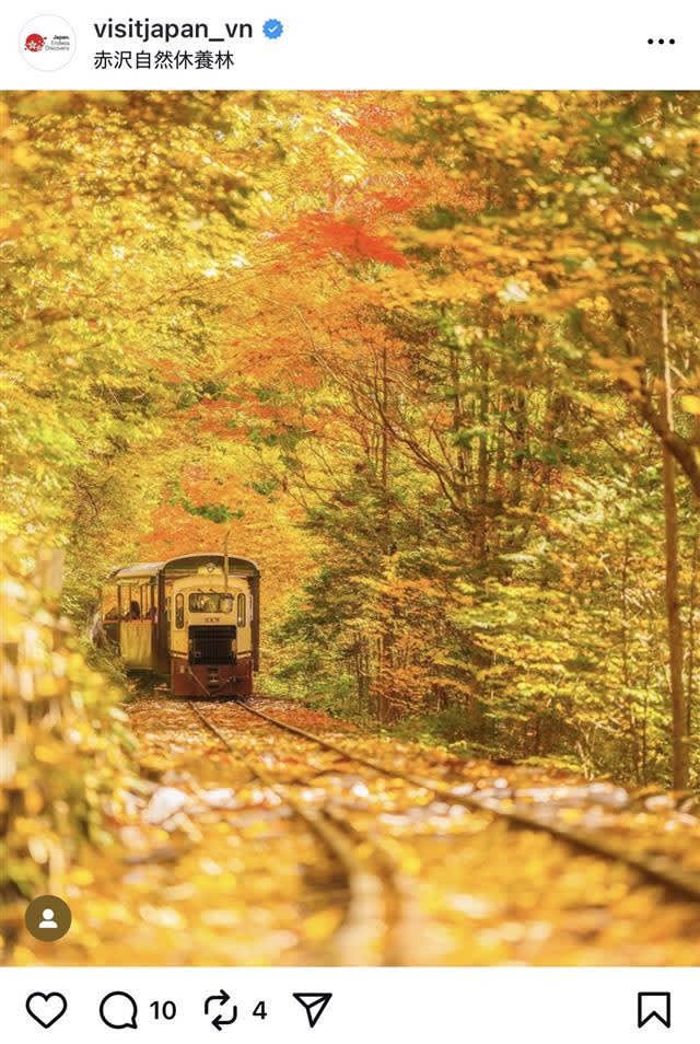列車が黄金色の紅葉の中を走り抜けるノスタルジックな秋の景色を見事に捉えている写真で、暖かい色調と柔らかい光がフォロワーを惹きつけ、本投稿は高いエンゲージメントを獲得しました。