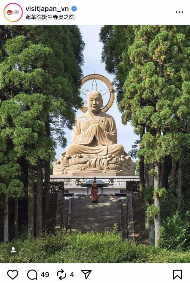 高い木々に囲まれた中央の仏像は迫力があり、またその下に立っている人の姿もバランスが良いことから、ベトナム人にとっても印象的な写真となった本投稿は、高いエンゲージメントを獲得しました。 (オーガニックエンゲージメント:約400)