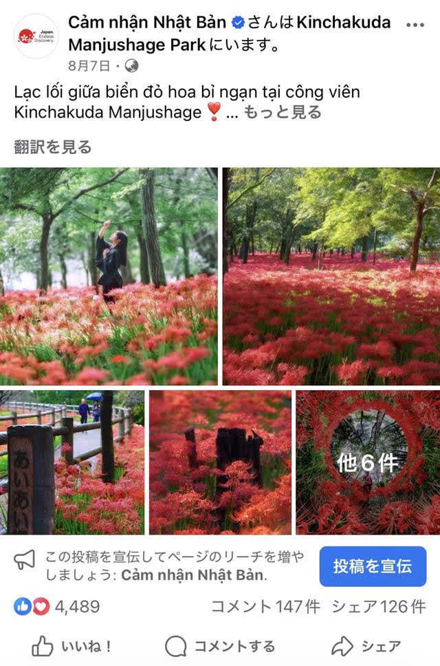 さまざまな角度から撮影された緑の木々と対比する彼岸花が、幻想的かつ自然と調和している本投稿は、高いエンゲージメントを獲得しました。(オーガニックエンゲージメント:約8,370)