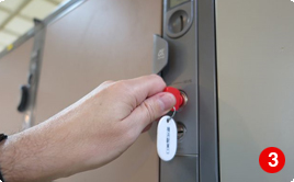 Bước 2: Cắm chìa khóa vào ổ khóa và xoay chìa để mở tủ
